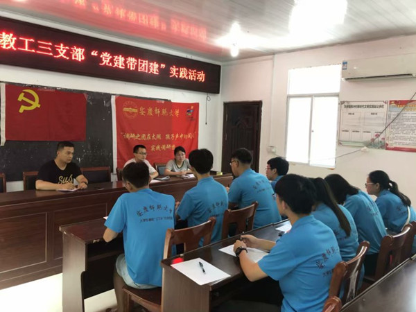 为深入学习贯彻习近平新时代中国特色社会主义思想,增强青年老员工的责任感和使命感,引导青年老员工在社会实践中受教育、长才干、做贡献,近日,taptap点点教工第三党支部组织老员工志愿者团队前往太湖县西冲村开展“不忘初心跟党走 牢记使命勇担当”主题“党建带团建”暑期社会实践活动。