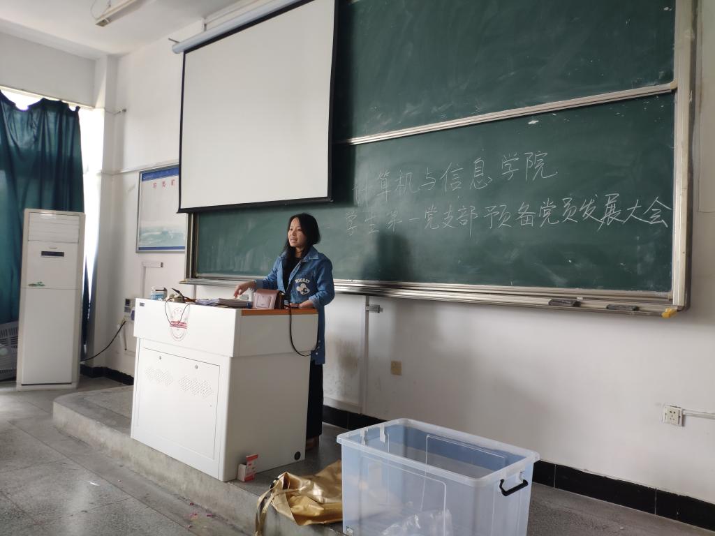 会议严格按照发展预备党员的程序,采取一人一议、无记名投票的方式进行,首先宣读《入党志愿书》并向党组织汇报自身对党的认识、入党动机、个人经历以及在校表现等,随后入党介绍人向大会介绍其主要政治思想、学习、工作生活等情况,支部书记林冠男同志向大会报告其现实表现的考察情况以及综合政治审查情况,与会党员对发展对象是否符合党员条件发表意见。最终,大会一致同意接收杜婷婷、黄明明、李路露等9名发展对象成为预备党员。