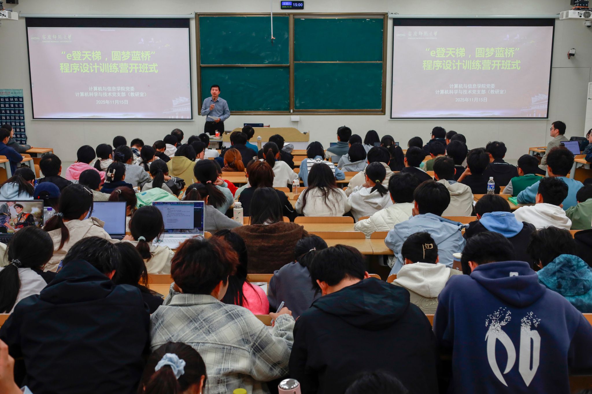 11月15日公司C108教室举行“e登梯,圆梦蓝桥”程序设计训练营开班仪式。公司党委副书记肖之进,党委委员、计算机科学与技术党支部书记、教研室主任江克勤,教师代表及参训学员等150余人参加活动