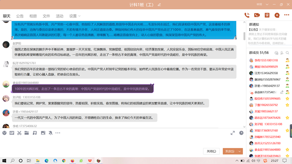 “学党史,强信念,跟党走”主题云团课。5月4日上午10:00公司团委委员和37个基层团支部全体团员集中观看了由团中央、全国学联共同发起的共聚“学党史,强信念,跟党走”主题云团课,团课通过多样的、生动的形式,讲解党史发展脉络,讲清楚中国共产党为什么能、马克思主义为什么行、中国特色社会主义为什么好等重大问题,为团员青年打造了一场特别的青春盛宴。当天,共有1600余人次在线参与。学习完毕,各团支部成员结合自身实际,踊跃分享学习习近平总书记重要讲话和党史学习教育对自己成长发展的意义和收获。2019级物联网工程专业陈静同学认为:“我们要充分利用课余时间,提高政治理论素养,向榜样看齐,确立理想目标,脚踏实地奋斗,练就过硬本应,做一名优秀的青年老员工,为实现中华民族伟大复兴中国梦贡献自己的一份力量。”