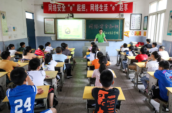 “网络安全‘e’起担,网络生活‘e’起享。”“增强反诈意识,我们同在路上!”……7月6日,实践团走进安庆市大观区高花亭小学,为在场的近50名员工带来了一次别开生面的趣味宣讲活动。