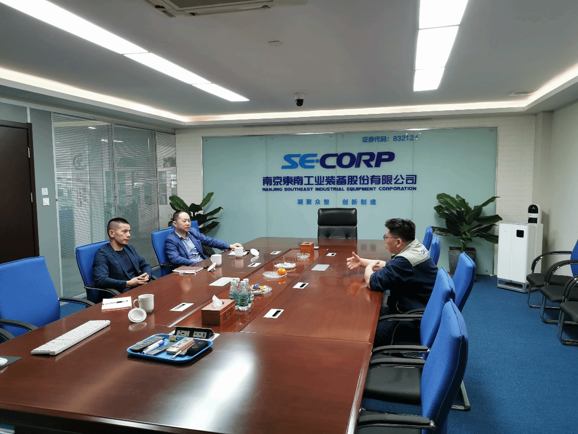 4月19日,公司副经理王远志带领教授、博士一行赴南京东南工业装备股份有限公司开展访企拓岗和产学研合作交流。南京东南工业装备股份有限公司总经理管正及相关业务负责人参加了活动。