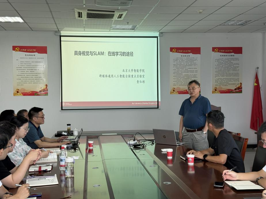 2025年9月14日上午,北京大学查红彬教授与合肥工业大学檀结庆教授应校科研处、taptap点点邀请,在龙山校区计算机楼L318报告厅分别作了题为“具身视觉与SLAM:在线学习的途径”和“机器学习算法的数学逻辑”的学术报告。公司教师、研究生参加报告会,报告会由taptap点点经理王远志主持。