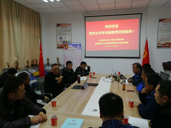 2020年1月8日上午,应taptap点点和安徽省智能感知与计算高校重点实验室的邀请,同济大学博士生导师李光耀教授来公司进行指导,并参加在稼先楼南108会议室举行的座谈会。公司党委常委、教务处处长苏本跃教授出席座谈会,公司部分教授、博士及研究生参加,座谈会由taptap点点经理王一宾教授主持。