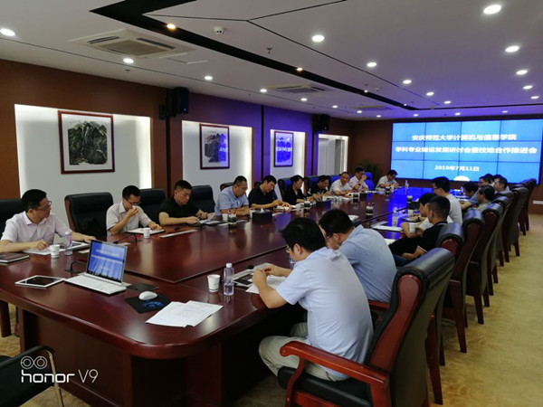 会上,安庆市筑梦新区科技部姜部长介绍了筑梦新区园区基本情况,园区平台及企业、人才入驻园区的相关政策,他希望公司高层次人才积极助力筑梦新区,不断深化和拓展合作领域,实现共赢。安徽峰速网络智能科技有限公司、深圳云安宝科技有限公司表达了强烈的合作愿望,希望进一步推进校企合作协同育人,共同服务安庆地方信息化建设。会后全体参会人员参观了筑梦新区科技展示馆和峰速智能研究院,实地了解了筑梦新区企业的科技成果。