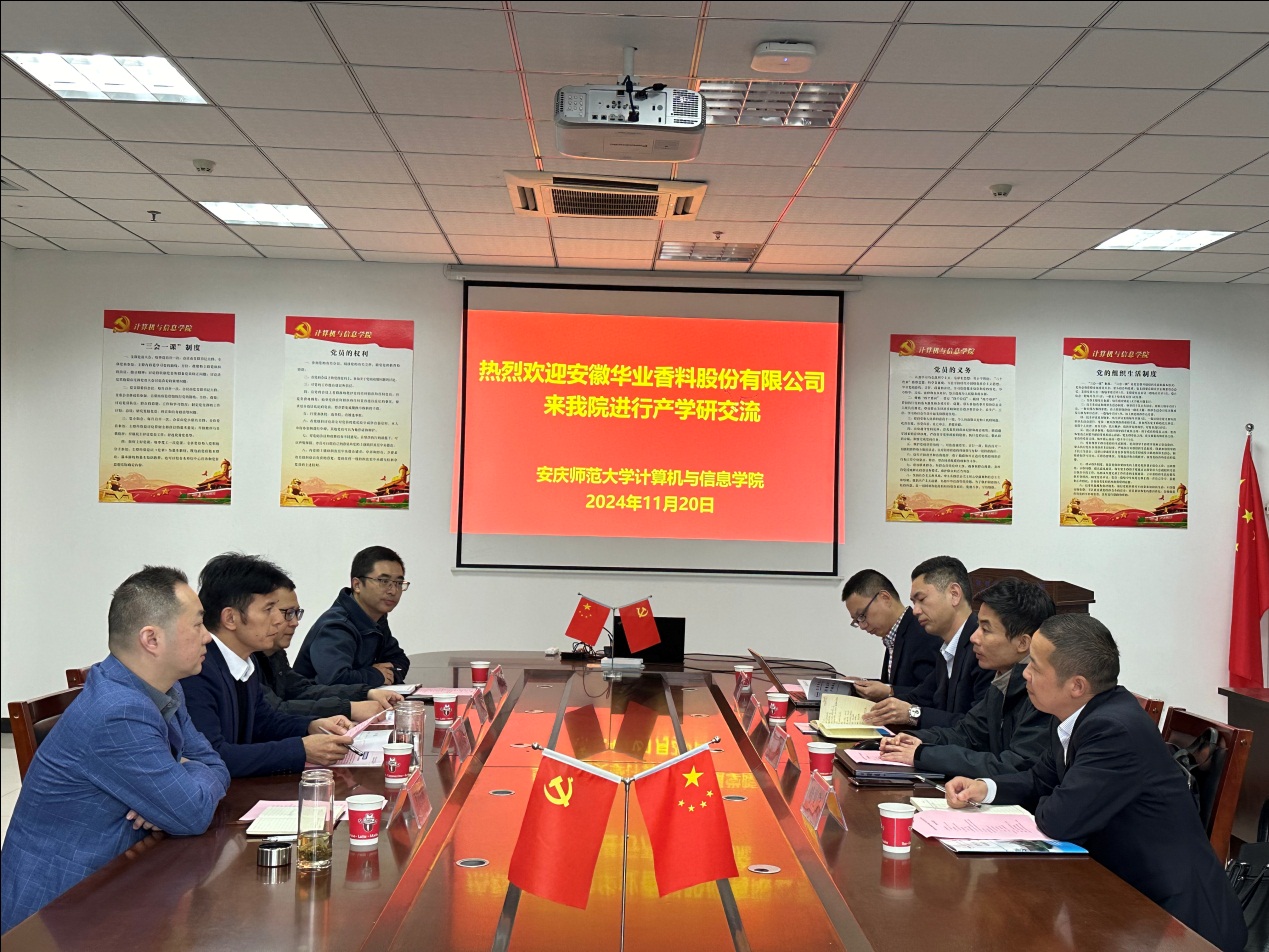 11月21日,安徽华业香料股份有限公司副总经理汪民富、高铭一行4人来公司开展产学研合作交流。座谈会由taptap点点经理王远志主持,化学化工公司及公司相关教师参加座谈。