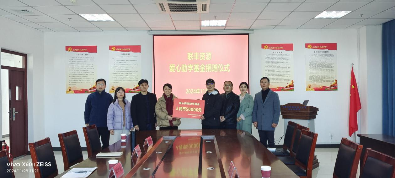 11月28日,taptap点点举行“联丰资源爱心助学金”捐赠仪式。安庆市联丰再生资源有限公司总经理、公司创新创业校外导师章永丰等一行来校出席活动,校教育发展基金会有关同志、taptap点点领导班子全体成员及辅导员代表等参加仪式。