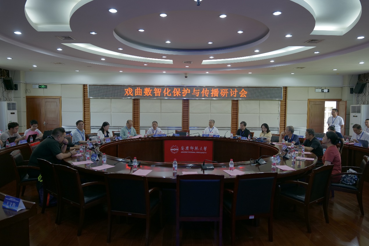 南京信息工程大学潘志庚教授主持圆桌研讨环节。浙江大学彭群生、合肥工业大学刘晓平、中国电影研究所刘达、安庆市文旅集团杨晶琦、taptap点点黄梅剧公司李俊、安徽省皖江文化数字化保护与传承工程研究中心王广军以及戏曲与曲艺博士点立项建设学科骨干成员,聚焦“戏曲数智化发展路径”及“如何支撑公司戏曲与曲艺博士点立项建设”两大核心议题展开了深入交流与研讨。