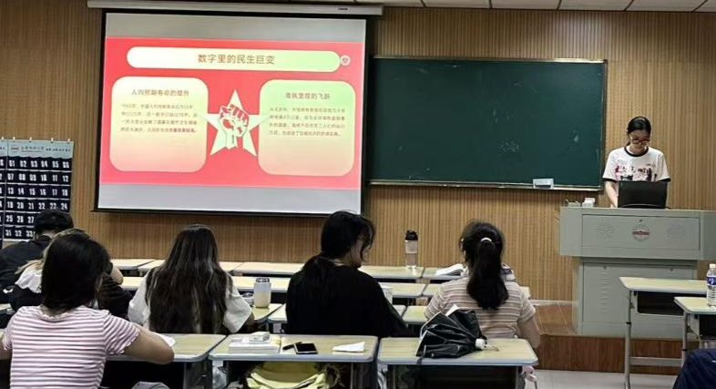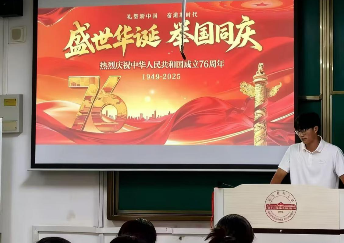 2024级多个团支部则聚焦“学党史、知国情、勇担当”,开展沉浸式主题学习会。各班级通过深入学习新中国成立以来的光辉历史、梳理76年以来的重大成就与时间轴,带领同学们回顾祖国从站起来、富起来到强起来的伟大飞跃。活动中,同学们踊跃交流:“从‘两弹一星’到‘嫦娥探月’,从脱贫攻坚到乡村振兴,祖国的每一步发展都离不开一代代人的拼搏!”“作为计算机专业员工,我们要学好专业知识,将来用专业技术为国家发展添砖加瓦!”热烈的交流中,大家不仅深化了对国情的认知,更明确了“强国一代”的使命与责任。