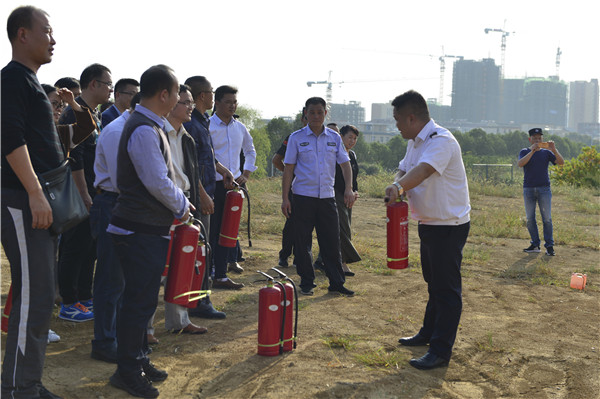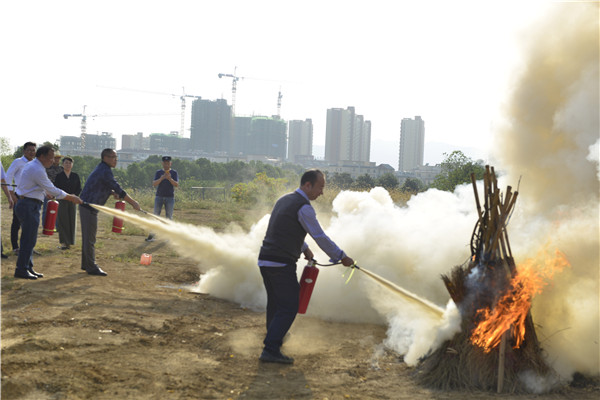 随后,师生们一同来到南田径场东南角的一处空地上,在公司保卫处和安徽政安防火工作人员的指导协助下,学习和演练如何快速灭火。