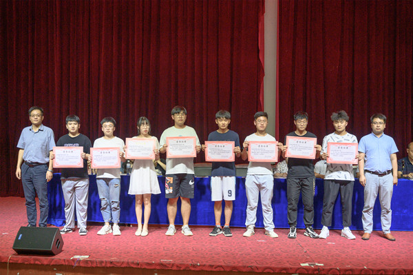 会上,辅导员李培森对学风建设月活动进行了总结,通报了2020-2021学年课堂教学巡查、文明寝室创建、大一晚自习出勤等情况。然后,辅导员陈文文、刘远泽分别宣读了获得“优良学风班集体”、“文明寝室”的名单,副经理刘奎为8个优良学风班集体颁发了奖状,辅导员夏梦寒为15个文明寝室颁发了奖状。