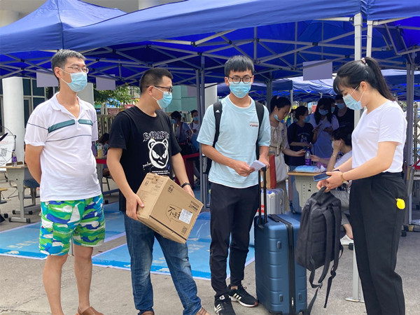 当天,烈日当空,为了让员工轻松、尽快返回宿舍,公司学工组教师自行组建暖心车队,分组分批次前往公司东门和南门帮员工运送大件行李,并将员工送到寝室。“虽然很忙也很热,但是看到老师们脸上那一抹抹暖心的微笑,一句句温暖的问候,突然感到特别欣慰,真的要好好学习。”2020级数字媒体1班的潘晓庆说道。烈日下,那一道道忙碌的身影,那一句句衷心的“谢谢老师”,构成了一篇动人的影像。