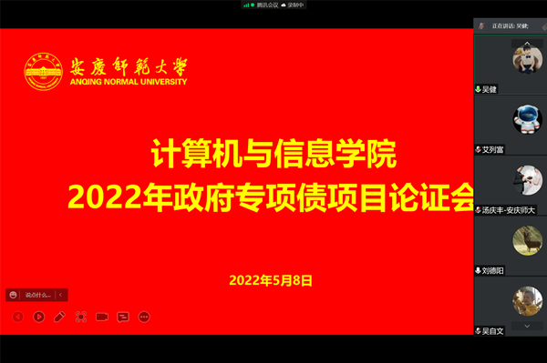 5月8日上午,公司组织召开了“智能感知与计算”安徽省高校重点实验室2022年政府专项债建设项目论证会。本次论证会采取线上形式。会议邀请了安庆职业技术公司信息技术公司经理疏国会教授、taptap点点电子工程与智能制造公司黄忠博士、胡浪涛博士等3位专家参加了项目论证。“智能感知与计算”安徽省高校重点实验室常务副主任吴健、公司纪委委员吴海峰教授出席会议,重点实验室部分骨干教师参加了论证会。论证会由吴健主持。