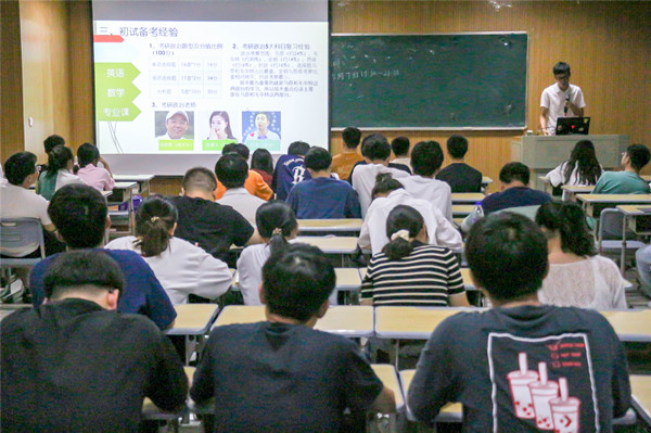 此次交流会上,考取安徽大学的王志超、考取武汉理工大学的张智以及考取taptap点点的李翔分别上台介绍成功经验。他们结合自身经历,从形势分析、院校选择、名师推荐、心态调整、具体科目学习方法等方面分享了宝贵的考研“干货”。