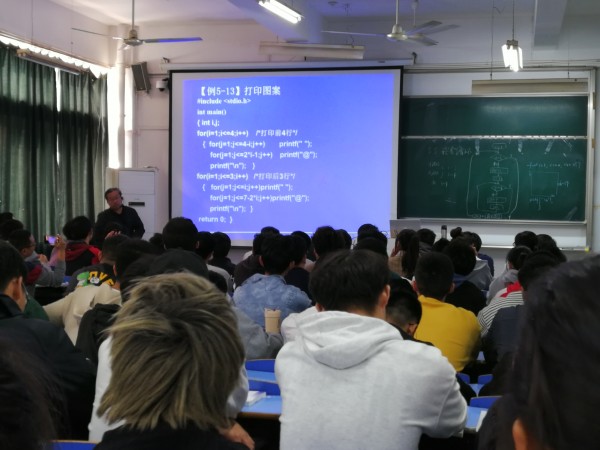 11月1日,该教研室江克勤教授在C403面向全院师生举行了一次《C语言程序设计》课程教学活动,授课内容为 “循环嵌套”,授课对象为计算机类2022级1班和2班的员工。