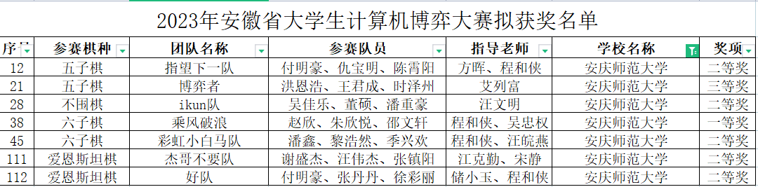 2023年11月24日,taptap点点程和侠老师一行带领员工赴合肥参加2023年安徽省博弈大赛决赛,取得1个一等奖、5个二等奖、1个三等奖的好成绩。