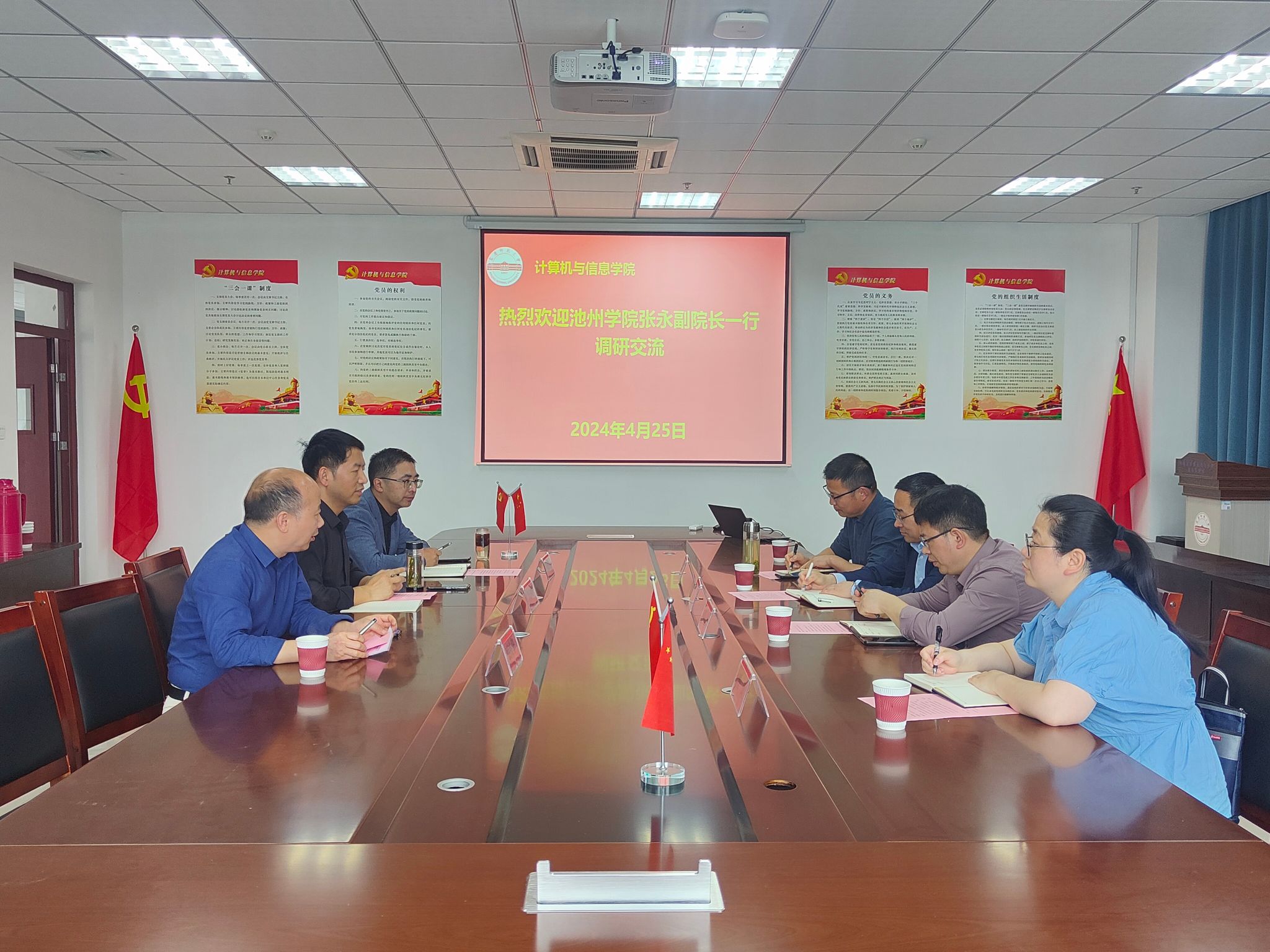4月25日上午,池州公司大数据与人工智能公司副经理张永一行到公司进行调研交流。公司副经理吴海峰、计算机基础教研室主任蔡庆华、计算机基础教研室相关老师参加本次交流会。