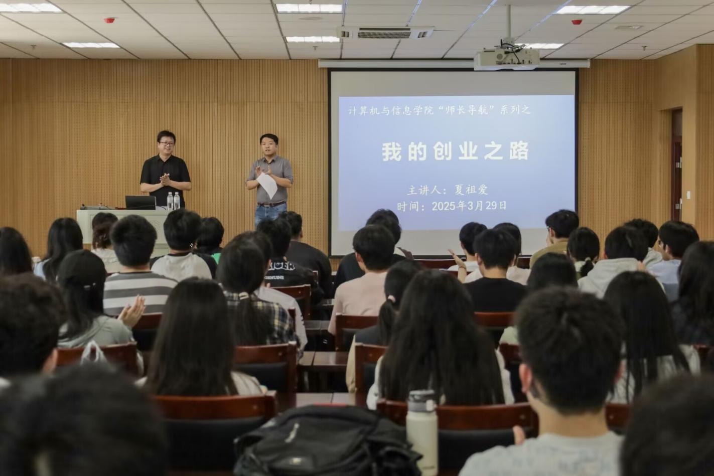 近日,taptap点点在302教室举办“师长导航”系列活动,邀请了公司2006届员工、安徽爱上飞通用航空有限公司总经理、合肥疆来智趣有限公司总经理、合肥疆来汽车服务有限公司联合创始人夏祖爱作“我的创业之路”主题讲座。本次讲座由公司副经理吴海峰主持。