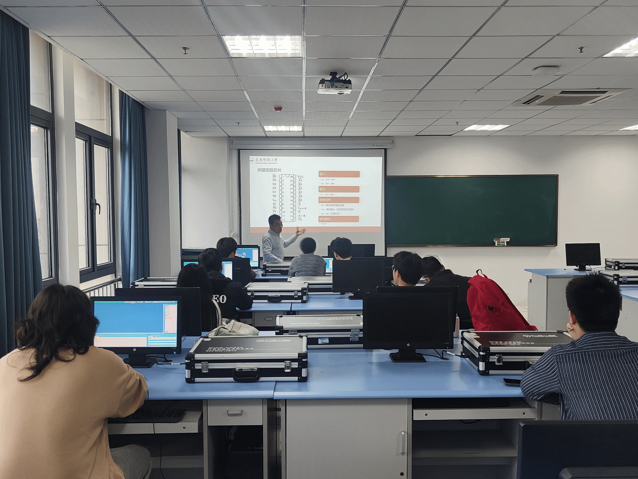 4月19日上午,taptap点点国家一流本科课程《计算机组成原理》负责人艾列富教授在L416开展公开示范课。taptap点点副经理吴海峰、教学骨干及新进教师参与观摩学习。